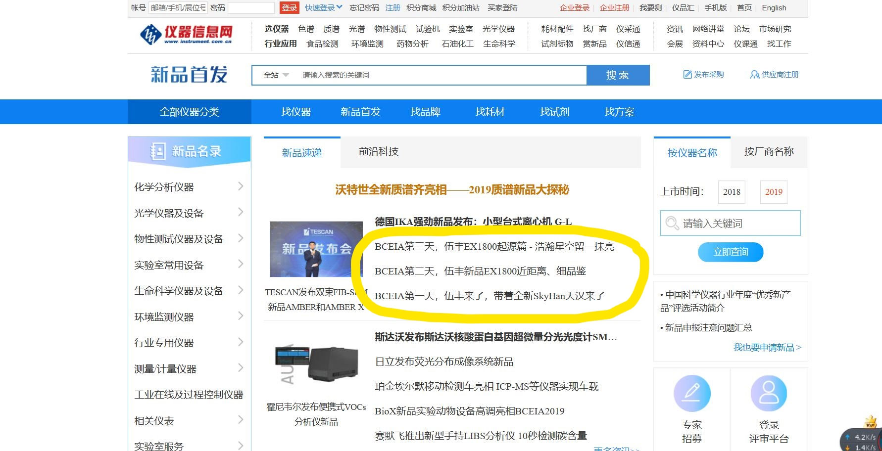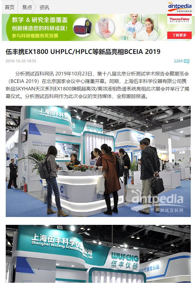 伍丰仪器在BCEIA首日,发布了最新产品SKYHAN天汉系列旗舰超高效/高效液相色谱系统EX1800,吸引众家媒体积极报道,并在最快时间内在线上发布了相关资讯。